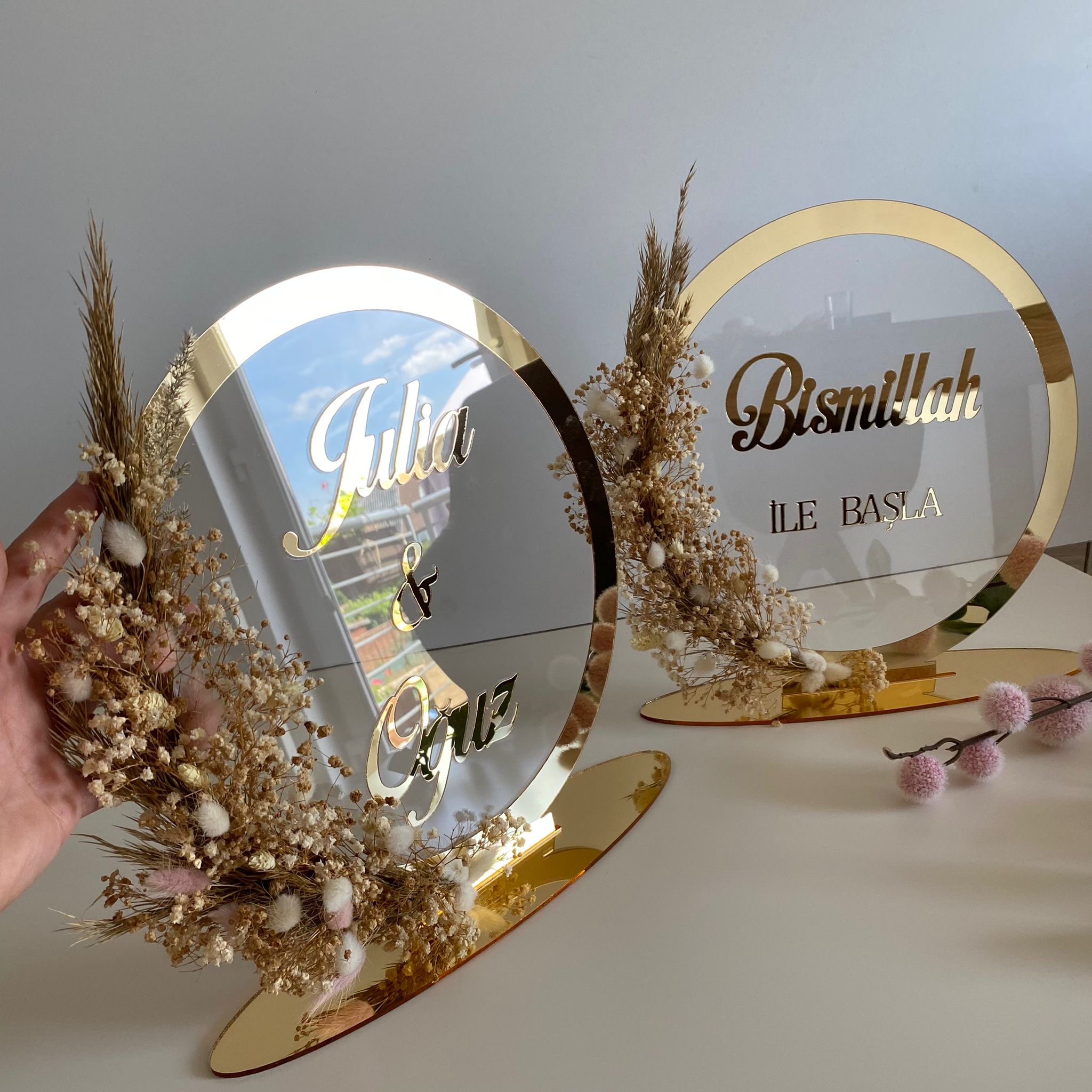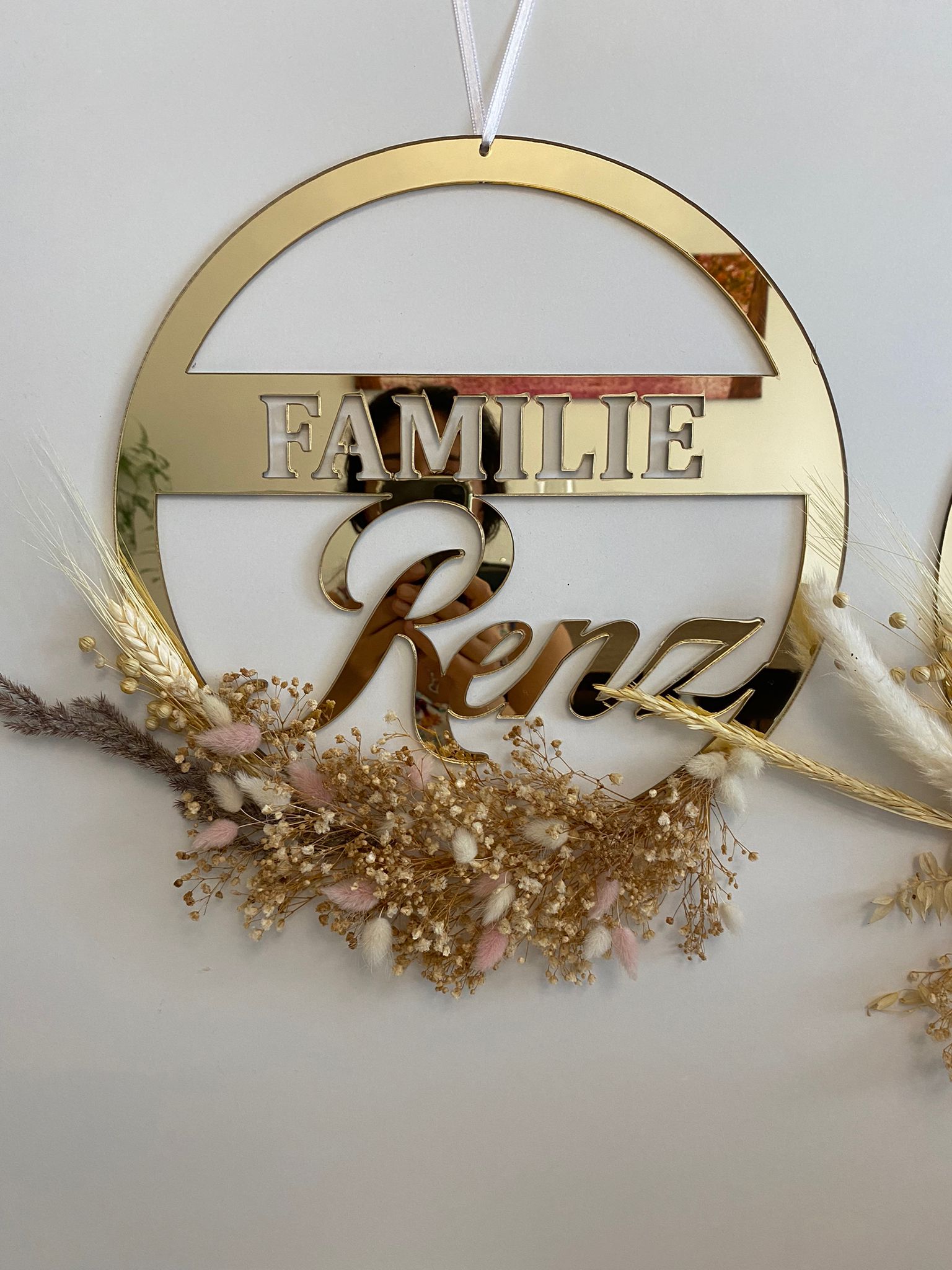 Namensaufsteller mit Trockenblumen Kreis